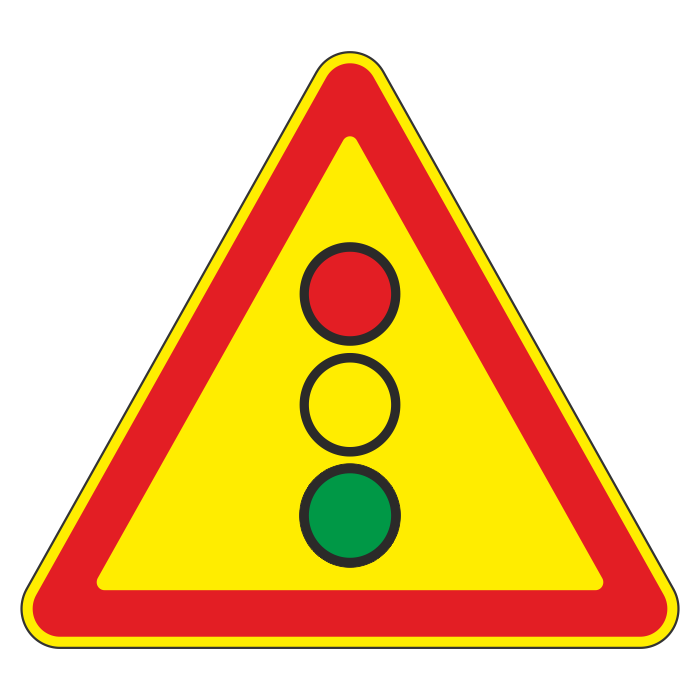 Дорожный знак 1.8 «Светофорное регулирование» (временный) (металл 0,8 мм, IV типоразмер: сторона 1500 мм, С/О пленка: тип А коммерческая) в Ижевске купить