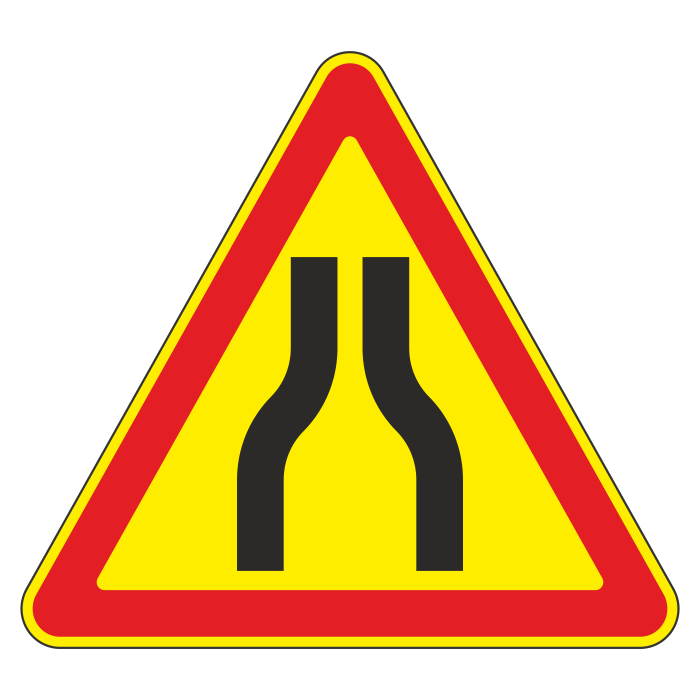 Дорожный знак 1.20.1 «Сужение дороги» (временный) (металл 0,8 мм, I типоразмер: сторона 700 мм, С/О пленка: тип В алмазная) в Ижевске купить
