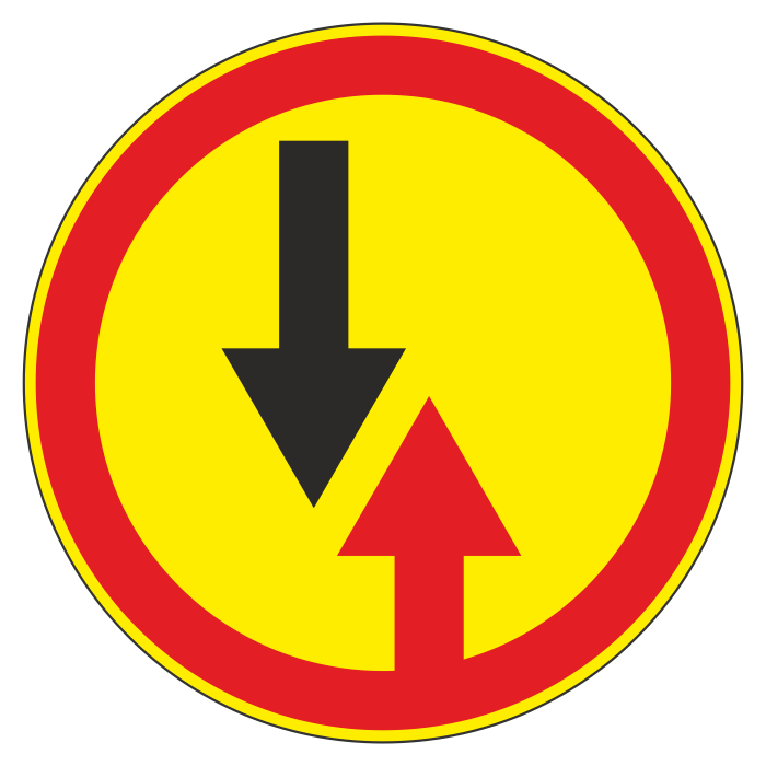 Дорожный знак 2.6 «Преимущество встречного движения» (временный) (металл 0,8 мм, II типоразмер: диаметр 700 мм, С/О пленка: тип В алмазная) в Ижевске купить