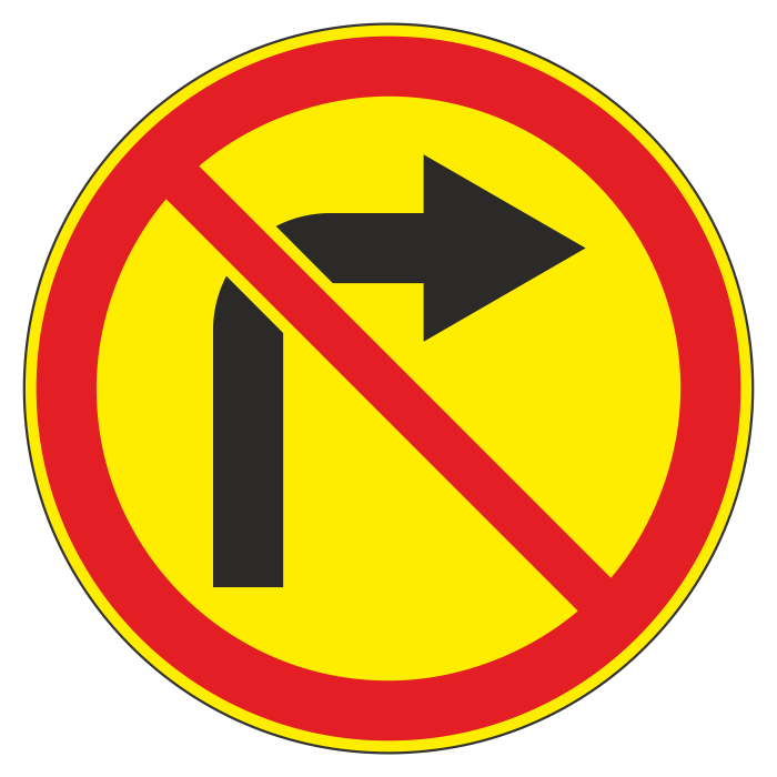 Дорожный знак 3.18.1 «Поворот направо запрещен» (временный) (металл 0,8 мм, III типоразмер: диаметр 900 мм, С/О пленка: тип А инженерная) в Ижевске купить
