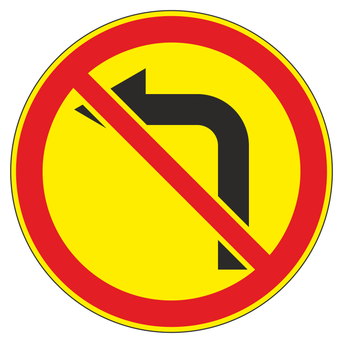 Дорожный знак 3.18.2 «Поворот налево запрещен» (временный) (металл 0,8 мм, III типоразмер: диаметр 900 мм, С/О пленка: тип А коммерческая) в Ижевске купить
