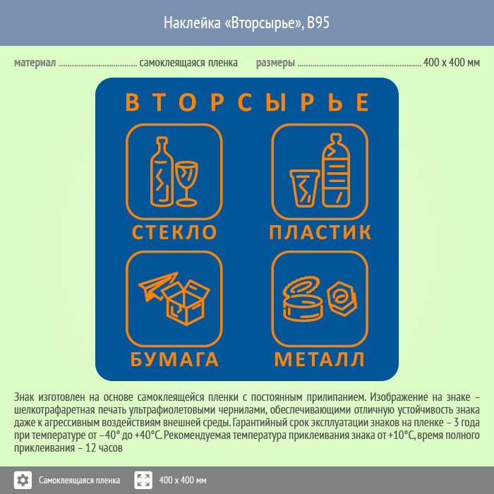Наклейка на бак «Вторсырьё», B95 (пленка, 400х400 мм) в Ижевске купить