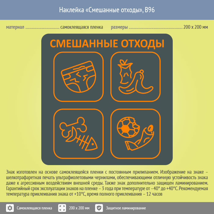 Наклейка на бак «Смешанные отходы», B96 (пленка c ламинированием, 200х200 мм) в Ижевске купить