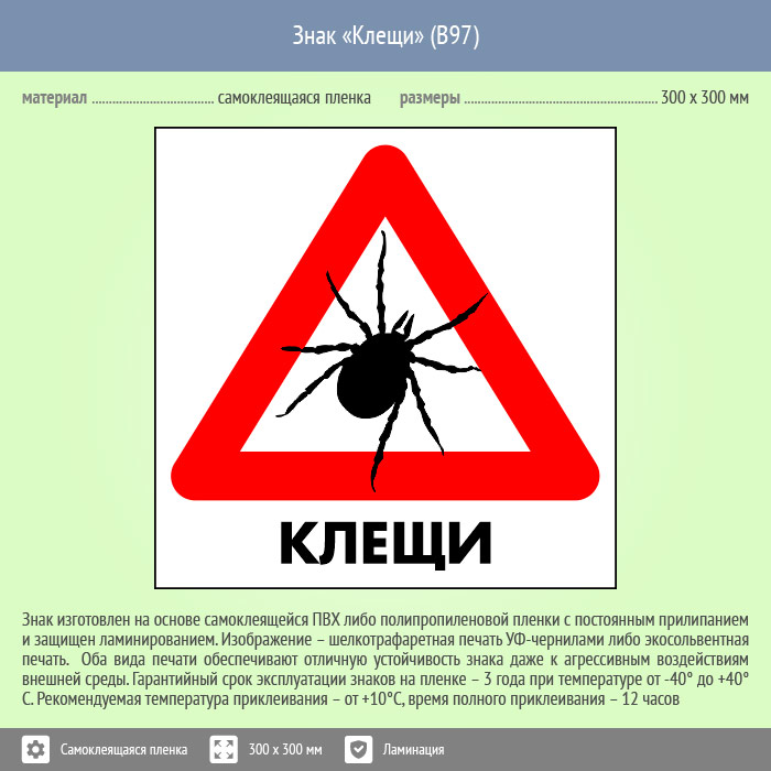 Знак «Клещи», B97 (пленка c ламинированием, 200х200 мм) в Ижевске купить