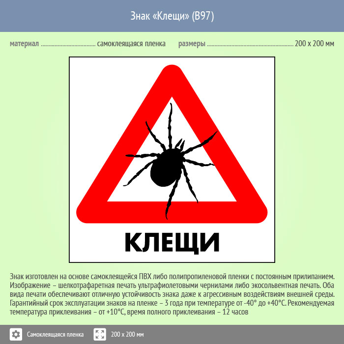 Знак «Клещи», B97 (пленка, 300х300 мм) в Ижевске купить