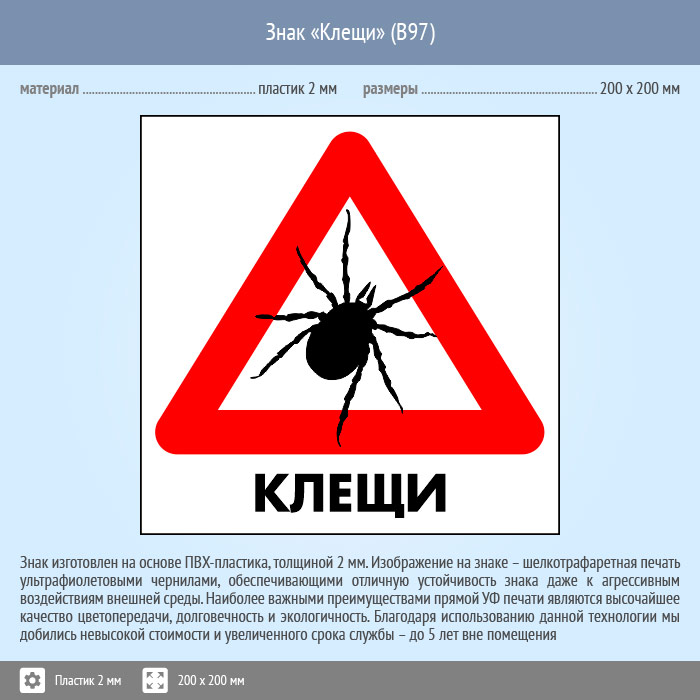Знак «Клещи», B97 (пластик, 300х300 мм) в Ижевске купить