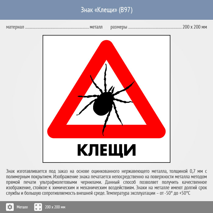 Знак «Клещи», B97 (металл, 300х300 мм) в Ижевске купить