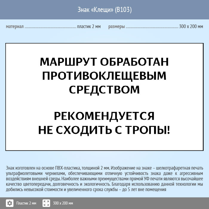 Знак «Клещи», B103 (пластик, 400х300 мм) в Ижевске купить