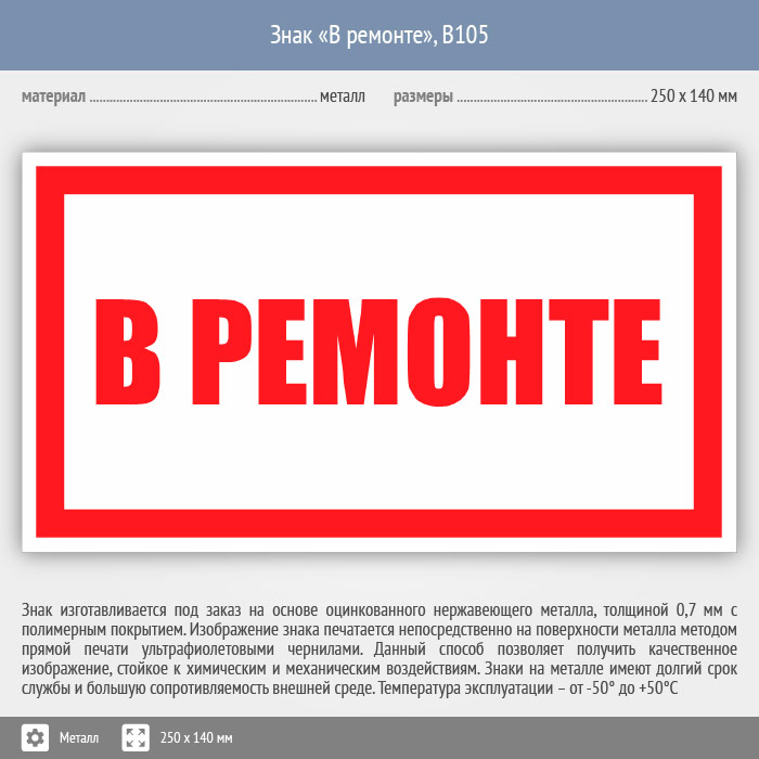 Знак «В ремонте», B105 (металл, 250х140 мм) в Ижевске купить