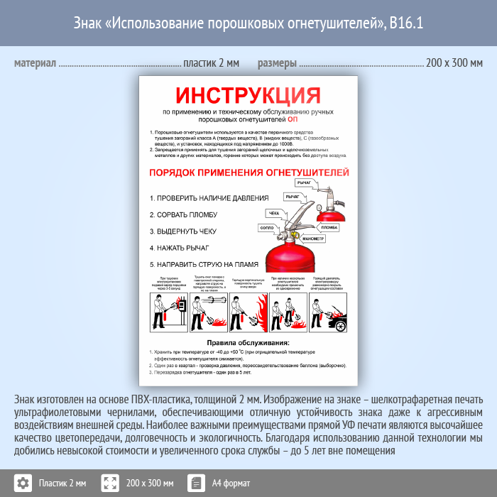 Знак «Использование порошковых огнетушителей», B16.1 (пластик, 200х300 мм) в Ижевске купить