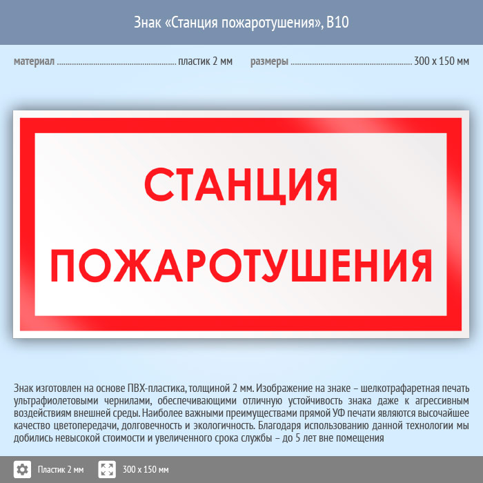 Знак «Станция пожаротушения», B10 (пластик, 300х150 мм) в Ижевске купить
