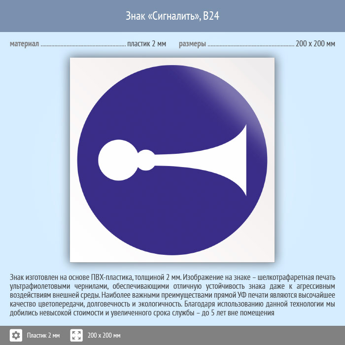 Знак «Сигналить», B24 (пластик, 200х200 мм) в Ижевске купить