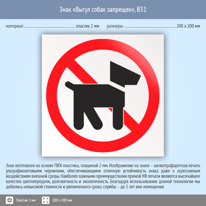 Знак «Выгул собак запрещен», B31 (пластик, 200х200 мм) в Ижевске купить