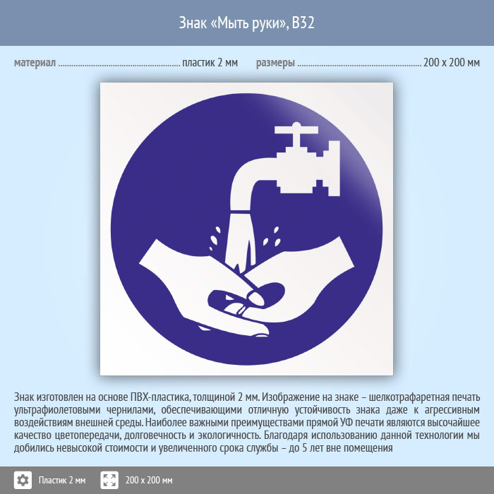 Знак «Мыть руки», B32 (пластик, 200х200 мм) в Ижевске купить