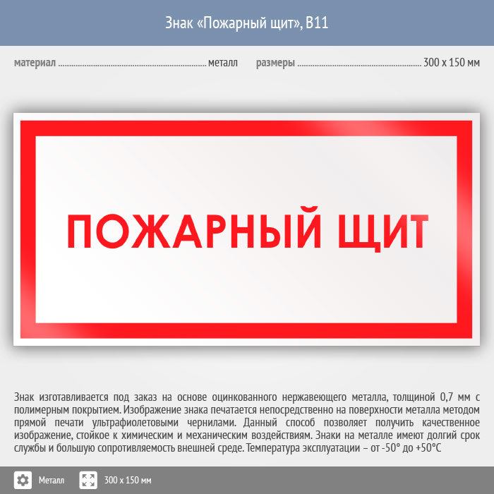 Знак «Пожарный щит», B11 (металл, 300х150 мм) в Ижевске купить