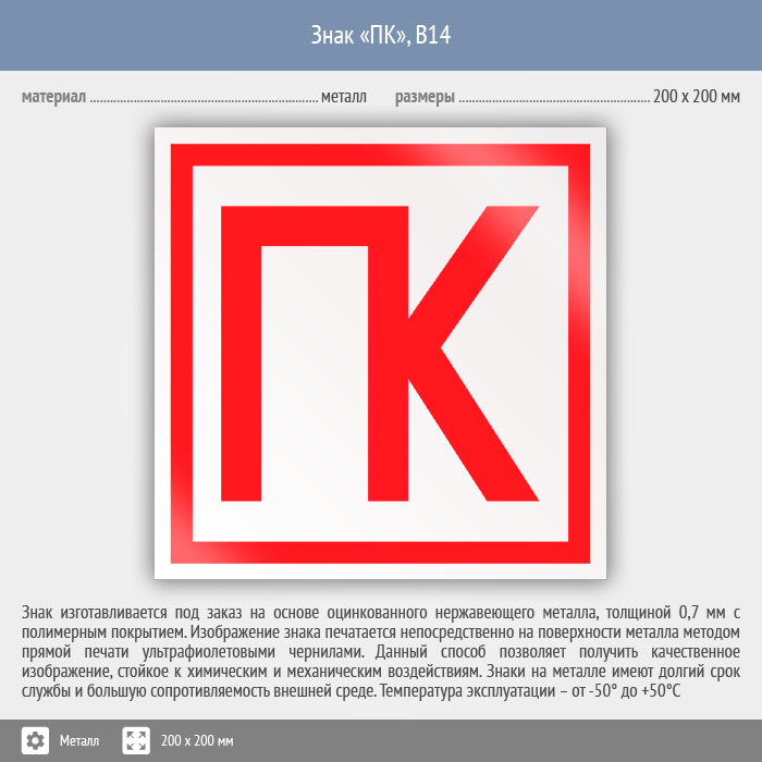 Знак «ПК», B14 (металл, 200х200 мм) в Ижевске купить