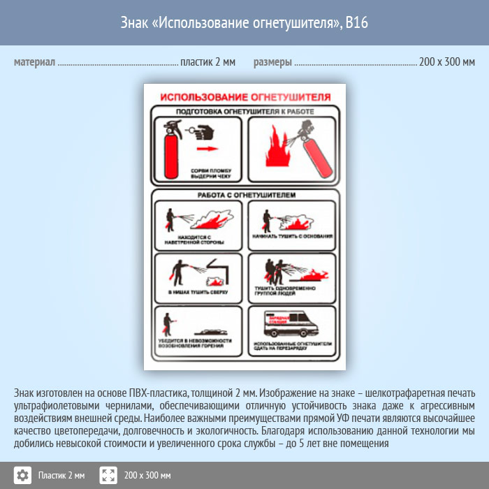 Знак «Использование огнетушителя», B16 (пластик, 200х300 мм) в Ижевске купить