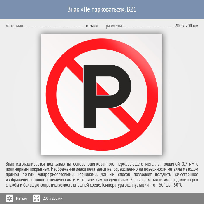 Знак «Не парковаться», B21 (металл, 200х200 мм) в Ижевске купить