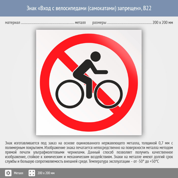 Знак «Вход с велосипедами (самокатами) запрещен», B22 (металл, 200х200 мм) в Ижевске купить