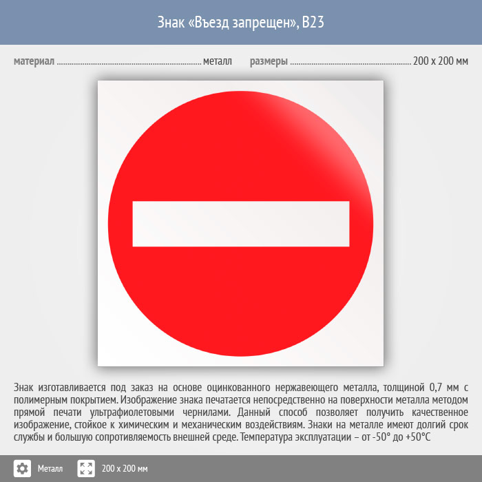 Знак «Въезд запрещен», B23 (металл, 200х200 мм) в Ижевске купить