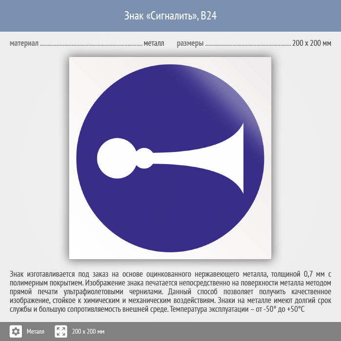 Знак «Сигналить», B24 (металл, 200х200 мм) в Ижевске купить