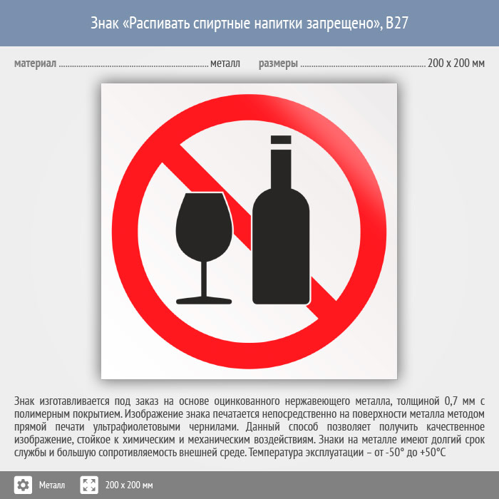 Знак «Распивать спиртные напитки запрещено», B27 (металл, 200х200 мм) в Ижевске купить