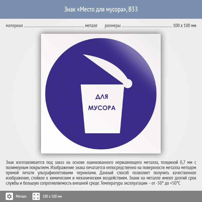 Знак «Место для мусора», B33 (металл, 100х100 мм) в Ижевске купить