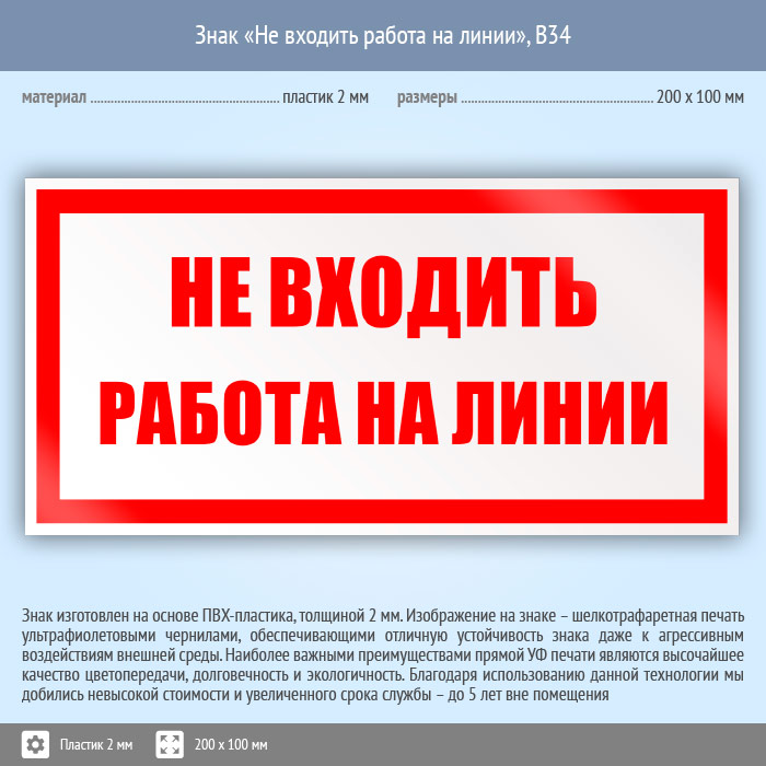 Знак «Не входить работа на линии», B34 (пластик, 200х100 мм) в Ижевске купить