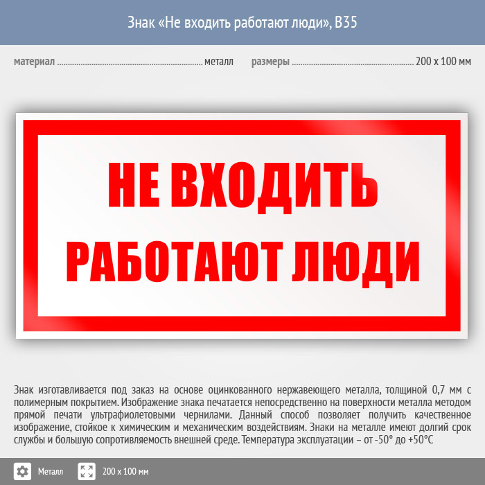 Знак «Не входить работают люди», B35 (металл, 200х100 мм) в Ижевске купить