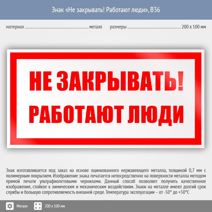 Знак «Не закрывать! Работают люди», B36 (металл, 200х100 мм) в Ижевске купить