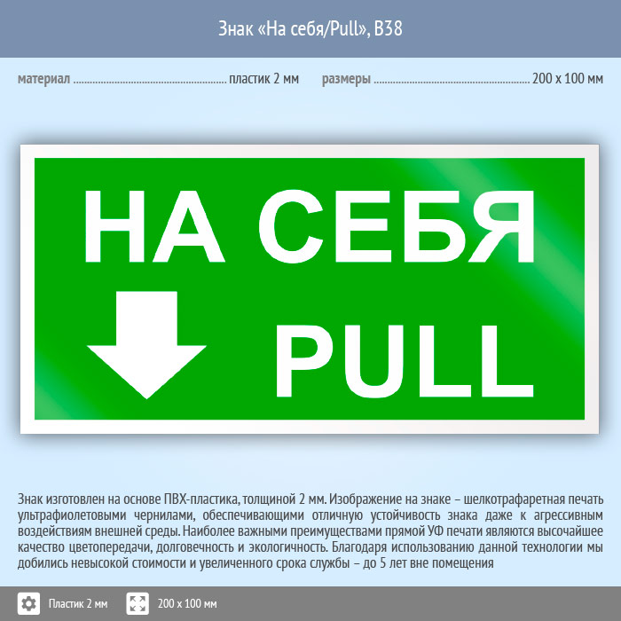 Знак «На себя/Pull», B38 (пластик, 200х100 мм) в Ижевске купить