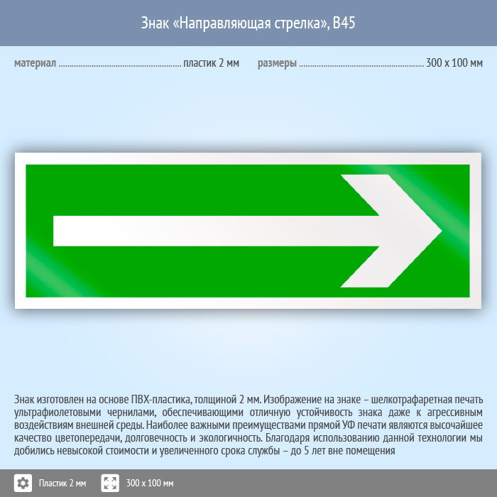 Знак «Направляющая стрелка», B45 (пластик, 300х100 мм) в Ижевске купить