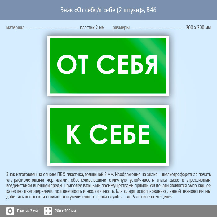 Знак «От себя/к себе», B46 (2 штуки, пластик, 200х100 мм) в Ижевске купить