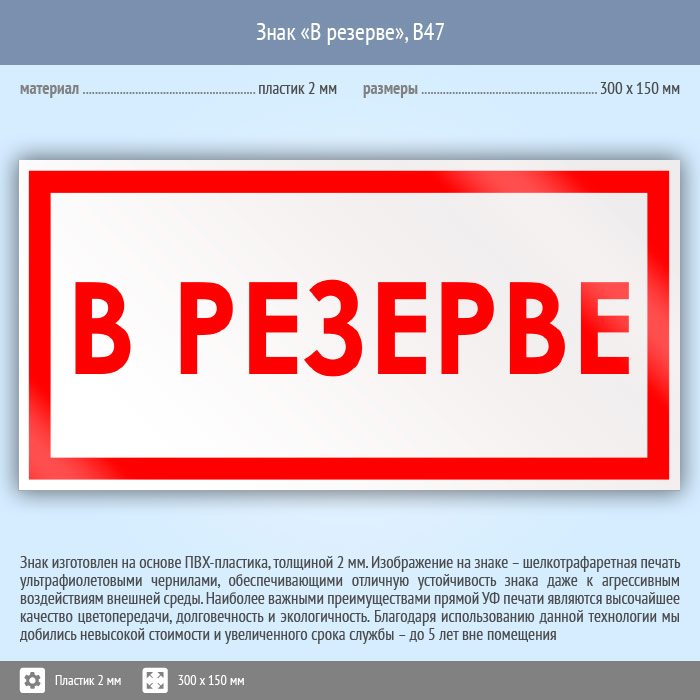 Знак «В резерве», B47 (пластик, 300х150 мм) в Ижевске купить