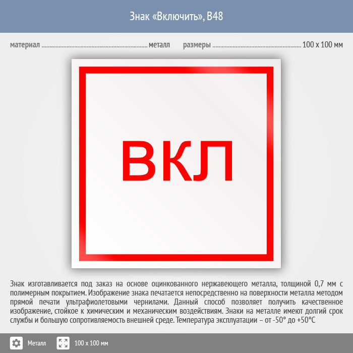 Знак «Включить», B48 (металл, 100х100 мм) в Ижевске купить
