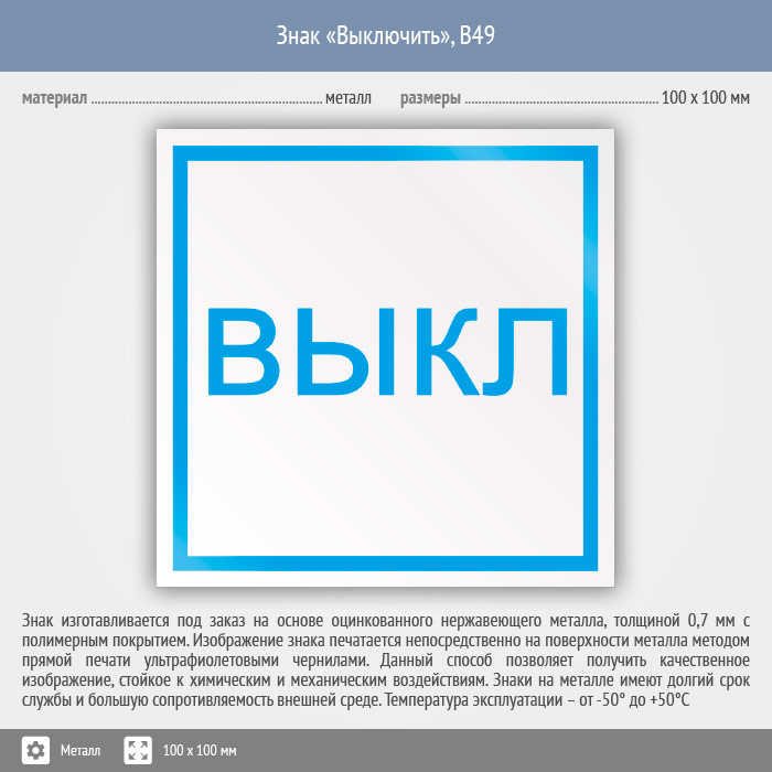 Знак «Выключить», B49 (металл, 100х100 мм) в Ижевске купить