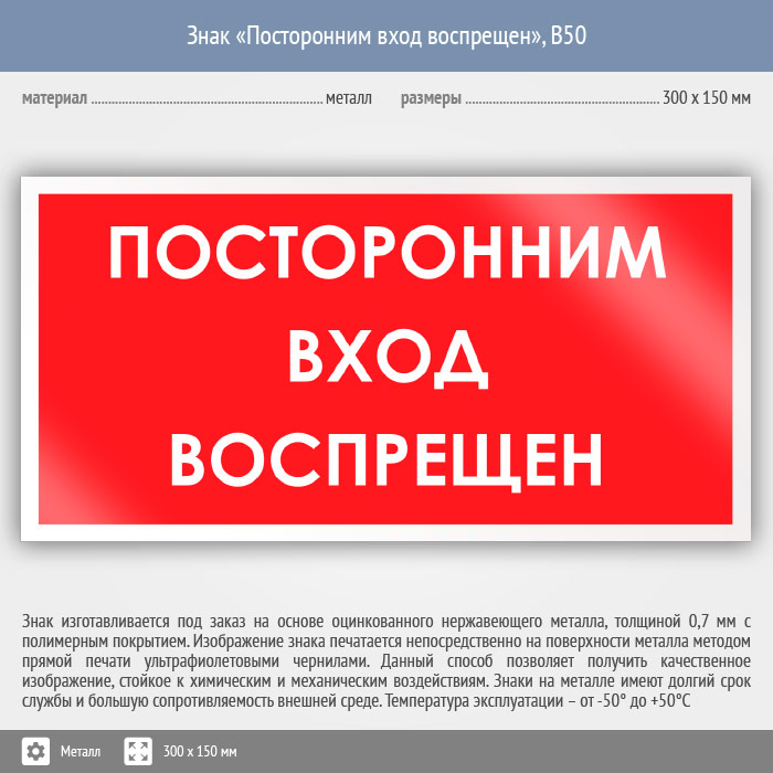 Знак «Посторонним вход воспрещен», B50 (металл, 300х150 мм) в Ижевске купить