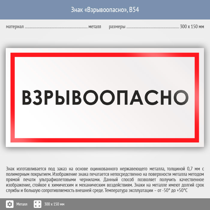 Знак «Взрывоопасно», B54 (металл, 300х150 мм) в Ижевске купить
