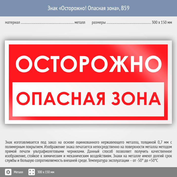 Знак «Осторожно! Опасная зона», B59 (металл, 300х150 мм) в Ижевске купить