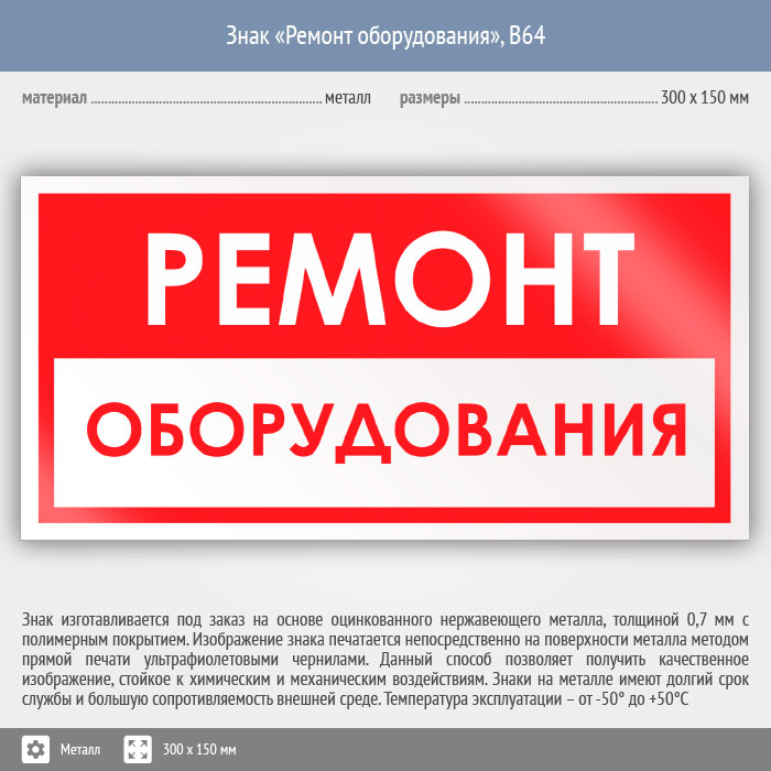 Знак «Ремонт оборудования», B64 (металл, 300х150 мм) в Ижевске купить