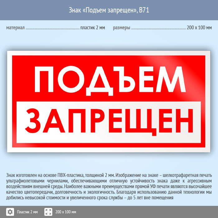 Знак «Подъем запрещен», B71 (пластик, 200х100 мм) в Ижевске купить