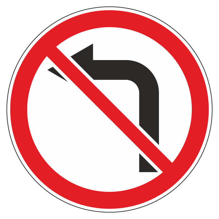 Дорожный знак 3.18.2 «Поворот налево запрещен» (металл 0,8 мм, II типоразмер: диаметр 700 мм, С/О пленка: тип А инженерная) в Ижевске купить