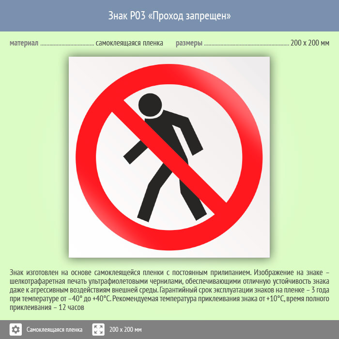 Знак P03 «Проход запрещен» (пленка, 200х200 мм) в Ижевске купить