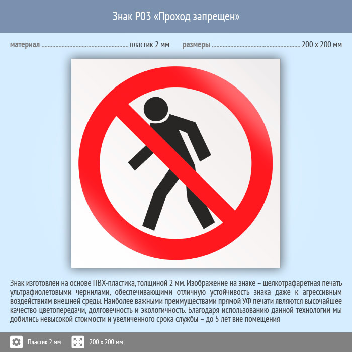 Знак P03 «Проход запрещен» (пластик, 200х200 мм) в Ижевске купить