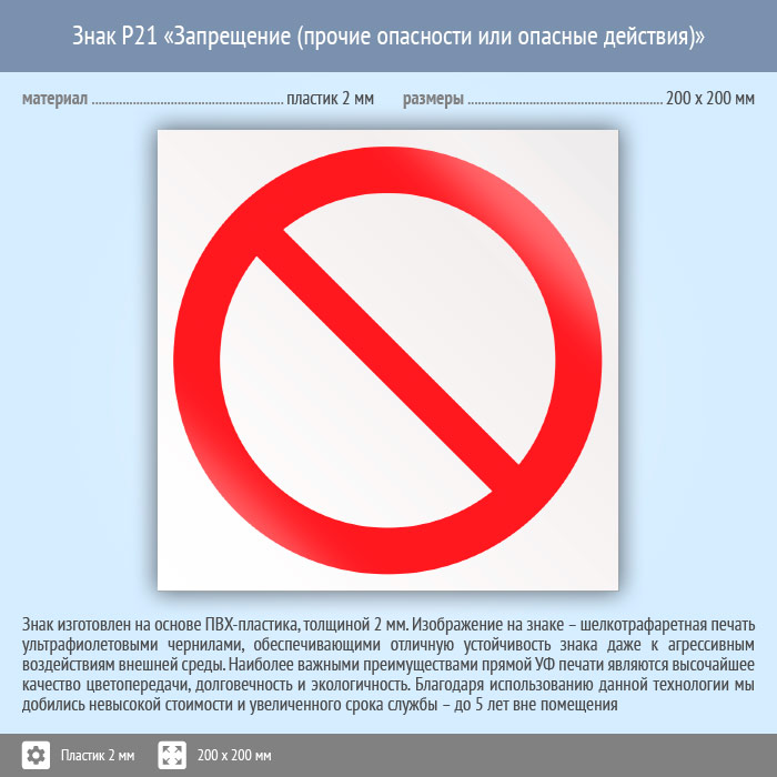 Знак P21 «запрещение (прочие опасности или опасные действия)» (пластик, 200х200 мм) в Ижевске купить