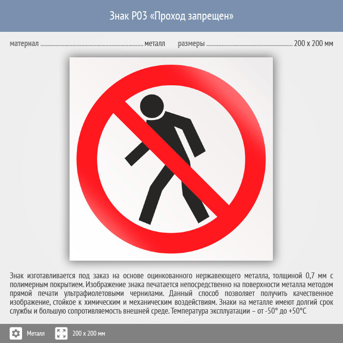 Знак P03 «Проход запрещен» (металл, 200х200 мм) в Ижевске купить