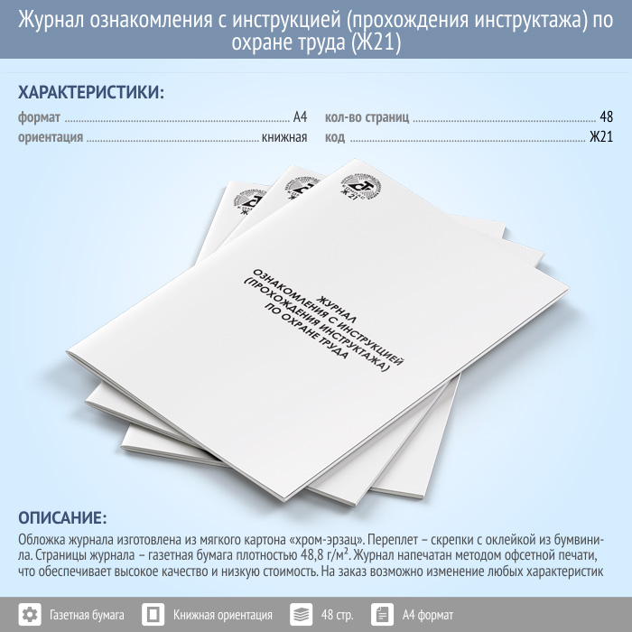 Журнал ознакомления с инструкцией (прохождения инструктажа) по охране труда (Ж21) в Ижевске купить