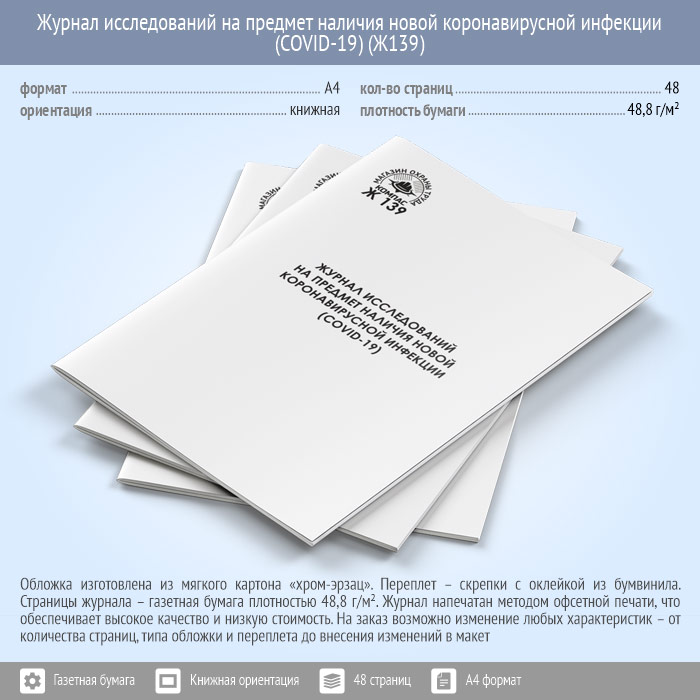 Журнал исследований на предмет наличия новой коронавирусной инфекции (COVID-19) (48 стр., Ж139) в Ижевске купить