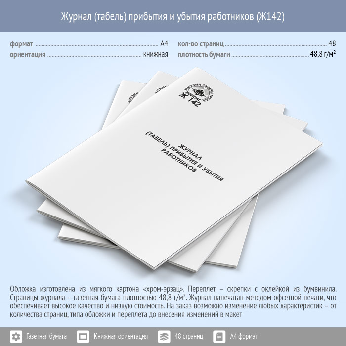 Журнал (табель) прибытия и убытия работников (48 стр., Ж142) в Ижевске купить
