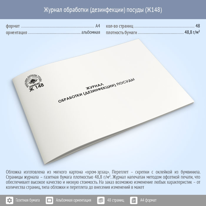 Журнал обработки (дезинфекции) посуды (48 стр., Ж148) в Ижевске купить